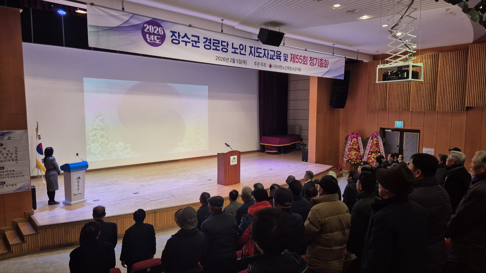 대한노인회 장수군지회(지회장 허기태)는 지난 5일 경로당 회장 및 사무장 등을 대상으로 한 노인지도자 교육과 제55회 정기총회를 병행하여 한누리전당 소공연장에서 ‘2026년 노인 지도자교육 및 제55회 정기총회’를 실시했다.